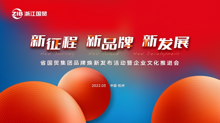 2022年3月9日,省国贸集团举行品牌焕新发布活动暨企业文化推进会,集团全体领导班子出席活动,总部各部室全体职工,成员公司中层以上人员、企业文化责任人等参加活动,活动还特别邀请了浙江日报、中国网、新蓝网、中新社、天目、凤凰网、中国蓝TV的媒体朋友。